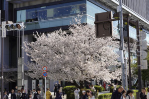 サクラテラスの前、牛込橋のたもとに咲くこの大きな桜